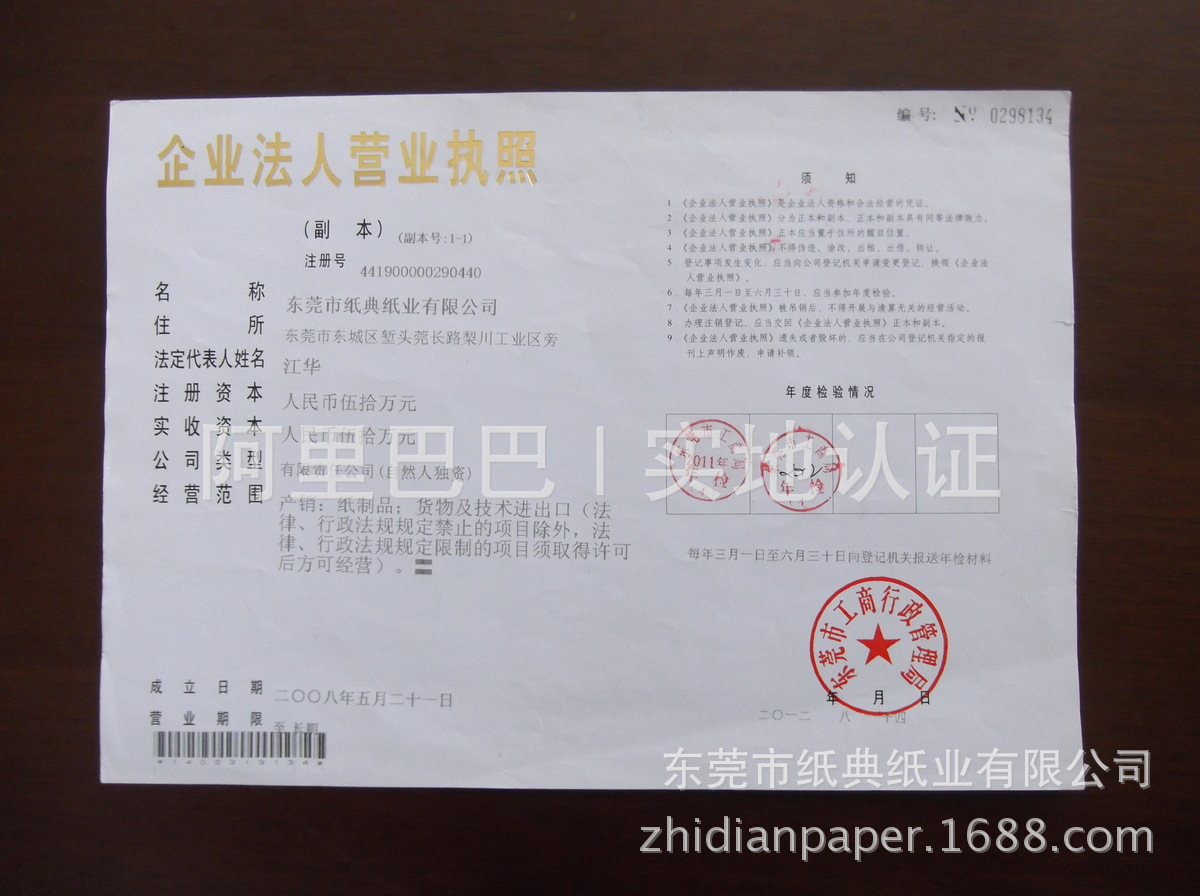東莞市紙典紙業(yè)有限公司通過阿里巴巴實地認證