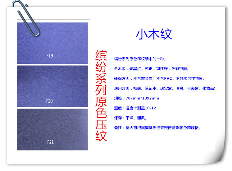 首頁 > 紙典產(chǎn)品 > - 繽紛原漿壓紋紙 - 小木紋小木紋