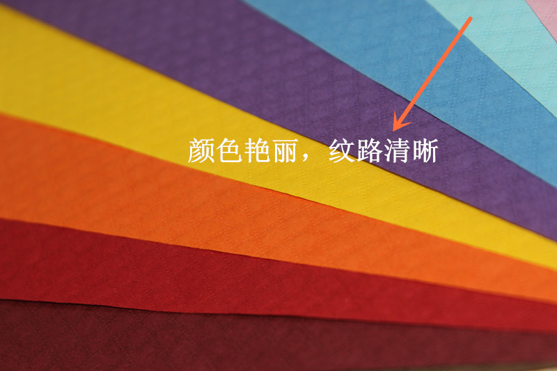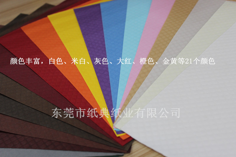 菠蘿紋系列:繽紛原色花紋紙系列中的一種,其表面紋路像鉆石,故也叫鉆石紋。其采用全木漿長纖維紙張,紙質(zhì)挺括 、色彩艷麗、純正、無黑點、韌性超強。其表面紋路像鉆石,但是顯得樸實、低調(diào)。適合于文具(相冊、筆記本)、珠寶盒、酒盒、化妝品盒、精品盒以及其他高端包裝。倉庫常年備原色紙庫存100噸左右。