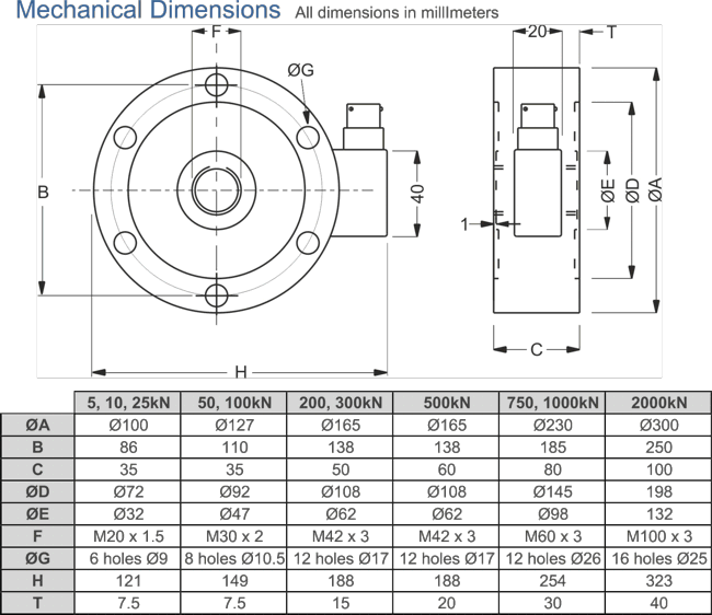 5, 10, 25, 50, 100, 200, 300, 500, 750, 1000, 2000kN