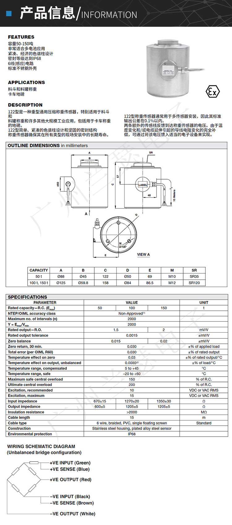 美國Tedea 122稱重傳感器產(chǎn)品參數(shù):