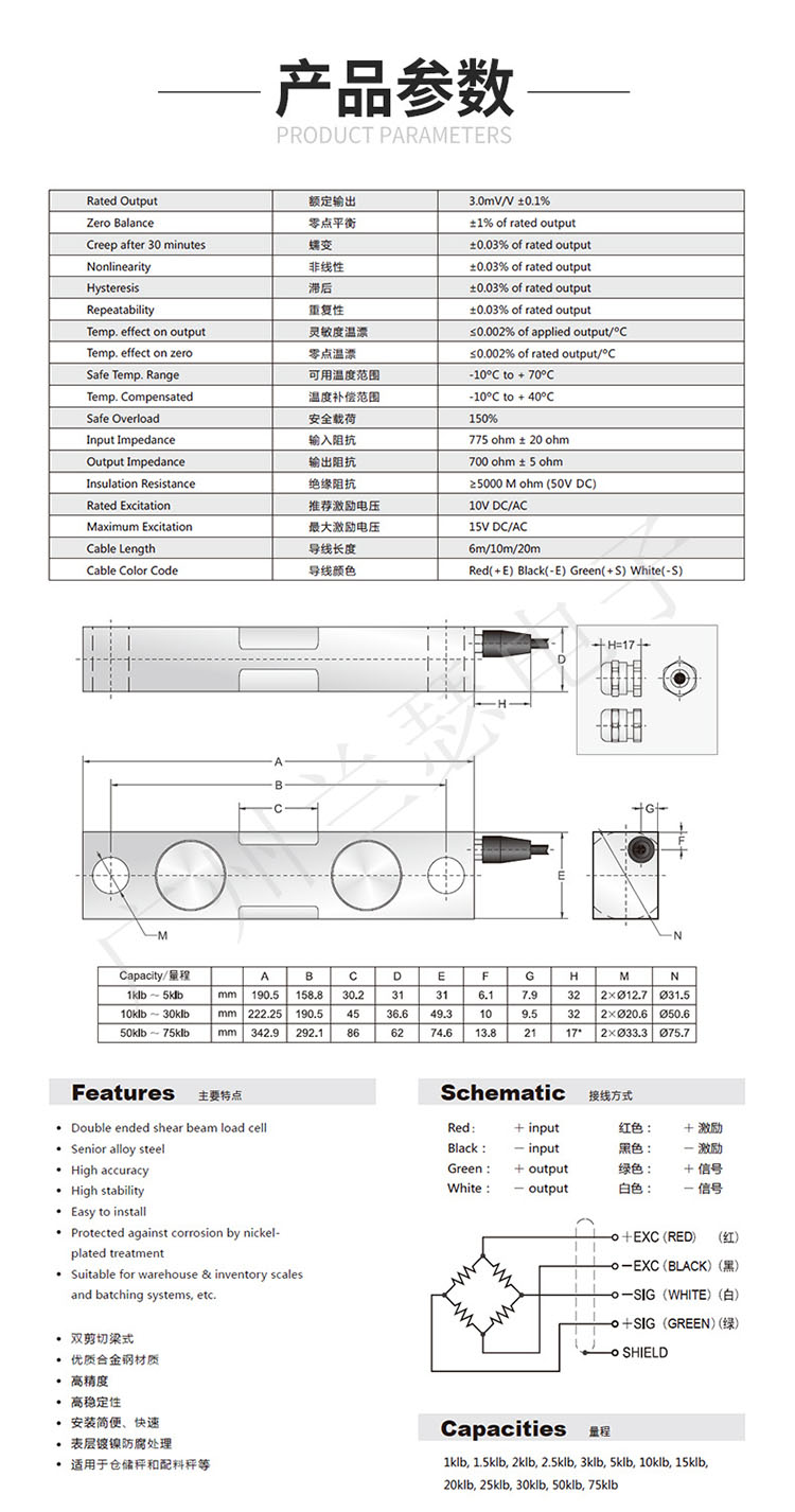 產品類型:雙剪切梁式稱重傳感器